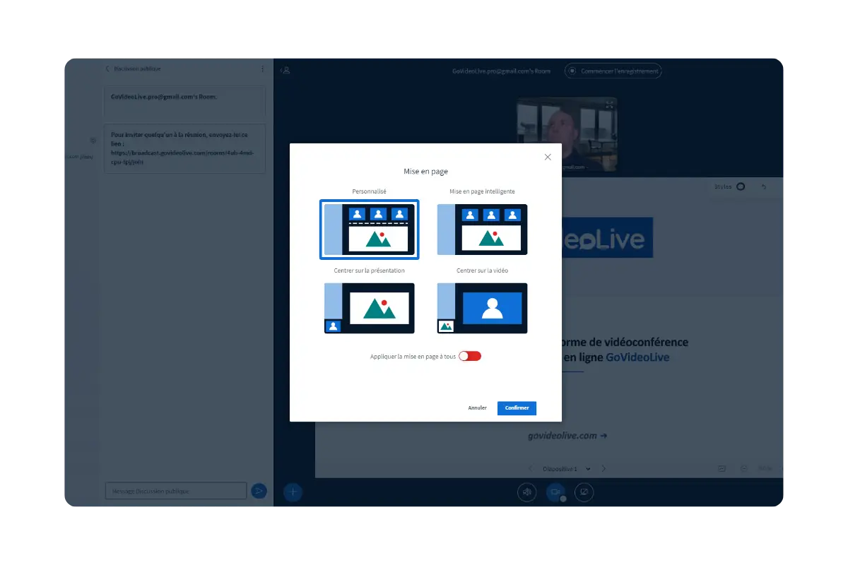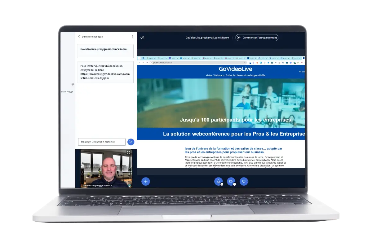 GoVideoLive propose de outils intégrés pour la formation ou visioconférence et est conçu pour vous faire gagner du temps.